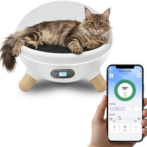Smart Pet Cooling and Warming Bed–WiFi App Control Climate System for Cats and Small Dogs, Automatic Constant Temperature (60-100°F), Safe Sleep Nest with 17″ Large Surface, No Subscription (White)