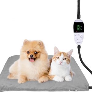 Ringco Pet Heating Pad for Cats & Small Dogs with 12 Adjustable Temperature, Waterproof and Chew Resistant Cat Heating Pad with Timer, Heated Cat Bed with Fleecy Cover (S: 20” x 16”)