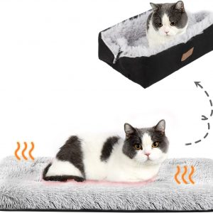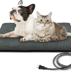 PETNF Outdoor Heated Pet Bed with Waterproof Cover, Pet Heating Pads for Dog, Soft Electric Blanket Auto Temperature Control, Heating Mat for Dog House Cabin Cot Doorway, Rescue Cats – Gray 27.6” x 15.7”