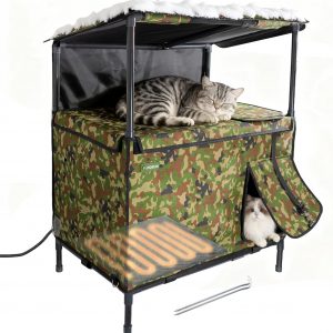 Outdoor Cat House, Heated for Winter Waterproof and Insulated Feral Outside Cat Shelter with Heating Pad, Weatherproof Pet Cottage for Barn, Porch, Garage, Gift for Stray Cats -18.5″D x 26.8″W x 15.4″H