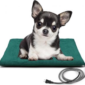 PETNF Outdoor Heated Pet Bed with Waterproof Cover,Pet Heating Pads for Dog,Soft Electric Blanket Auto Temperature Control, Heating Mat for Dog House Cabin Cot Doorway, Rescue Cats, Green 19.7” x 11.8”