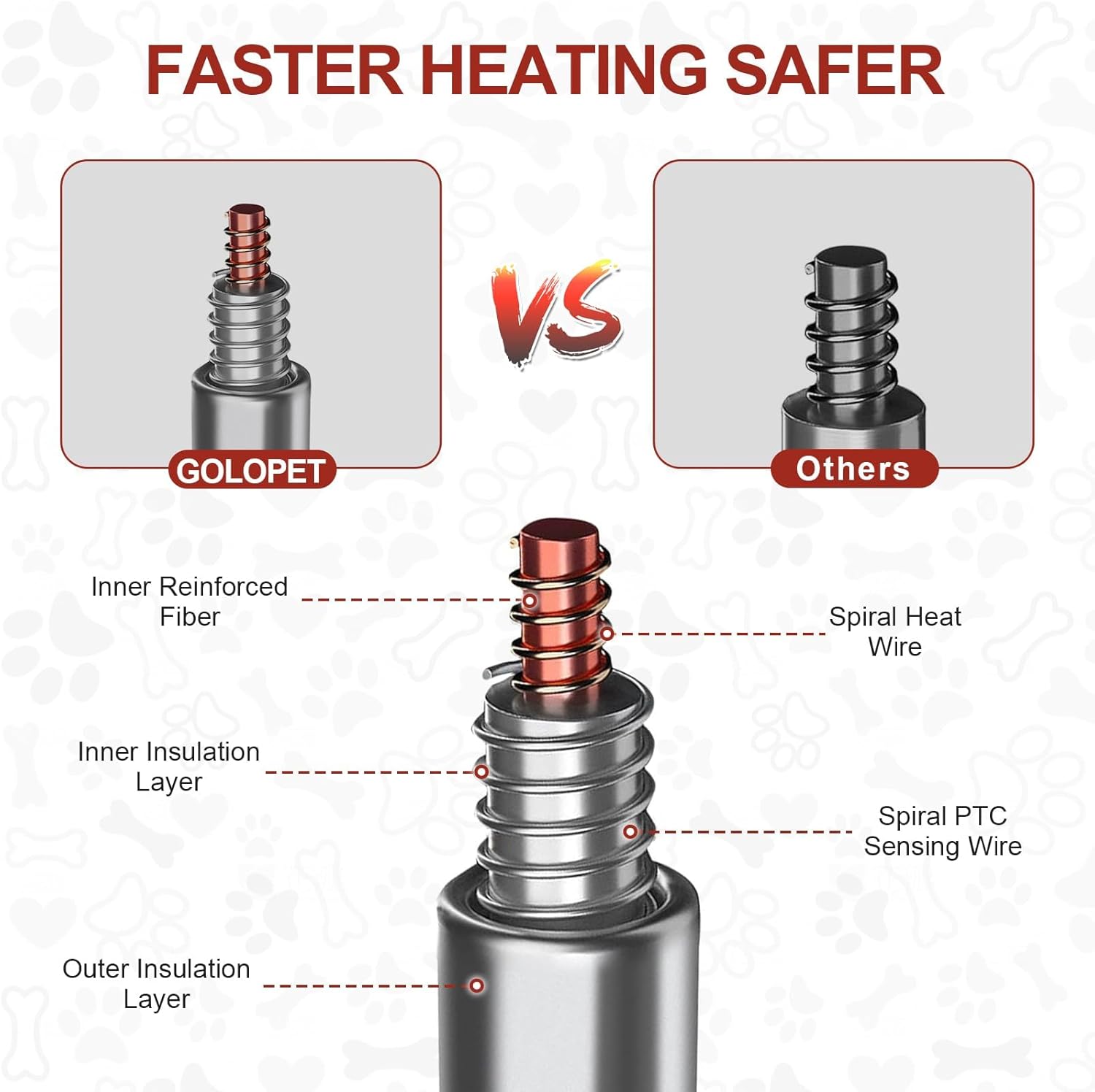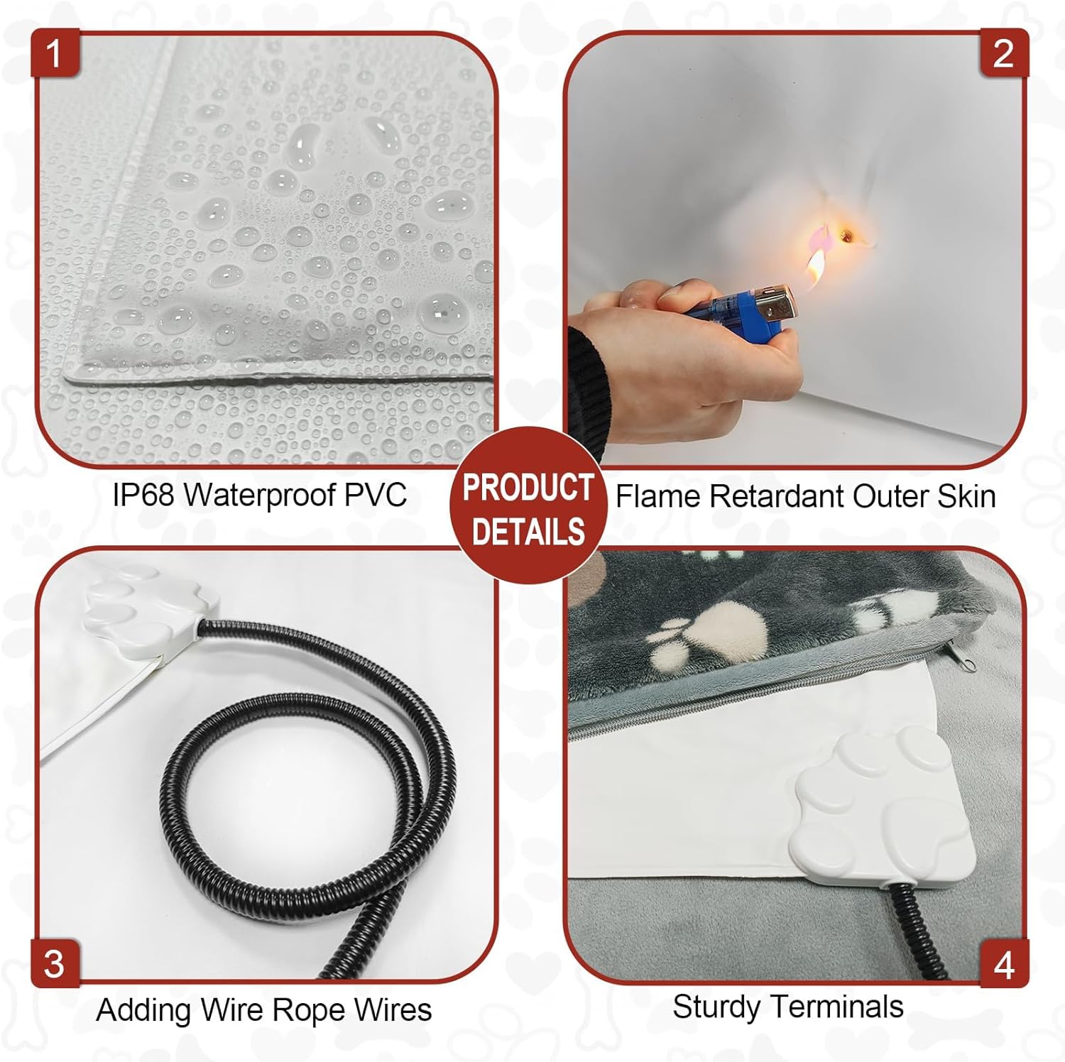 - SAFETY DESIGN: Our electric heating pad for cats features an 8-layer protective construction with UL-approved electric heating wire and built-in temperature sensor to ensure warmth, comfort and prevent burns. The waterproof and flame retardant inner material adds an extra layer of safety. In addition, water does not seep into the inside of the heating blanket, making it easy to clean.