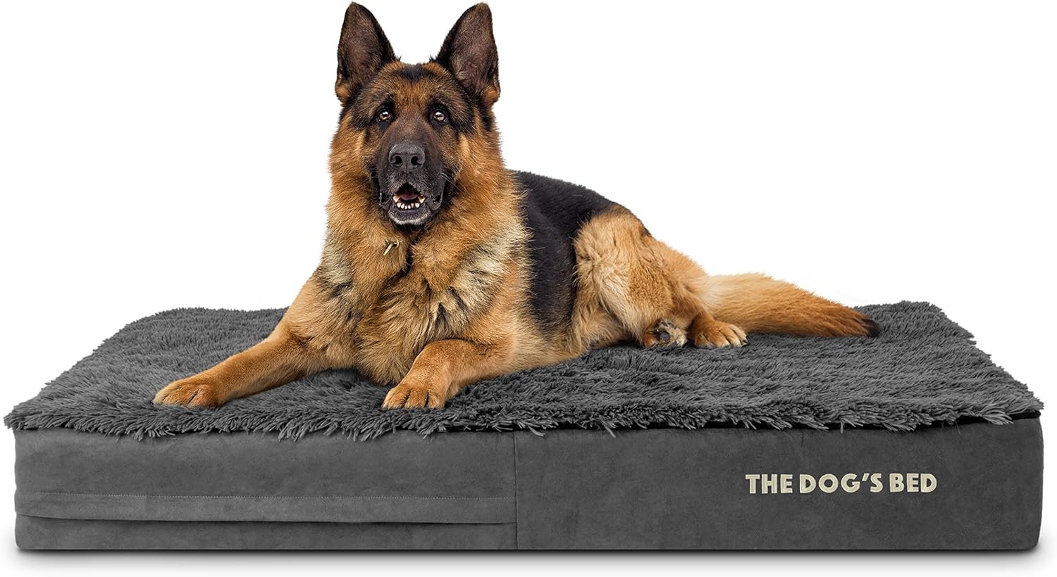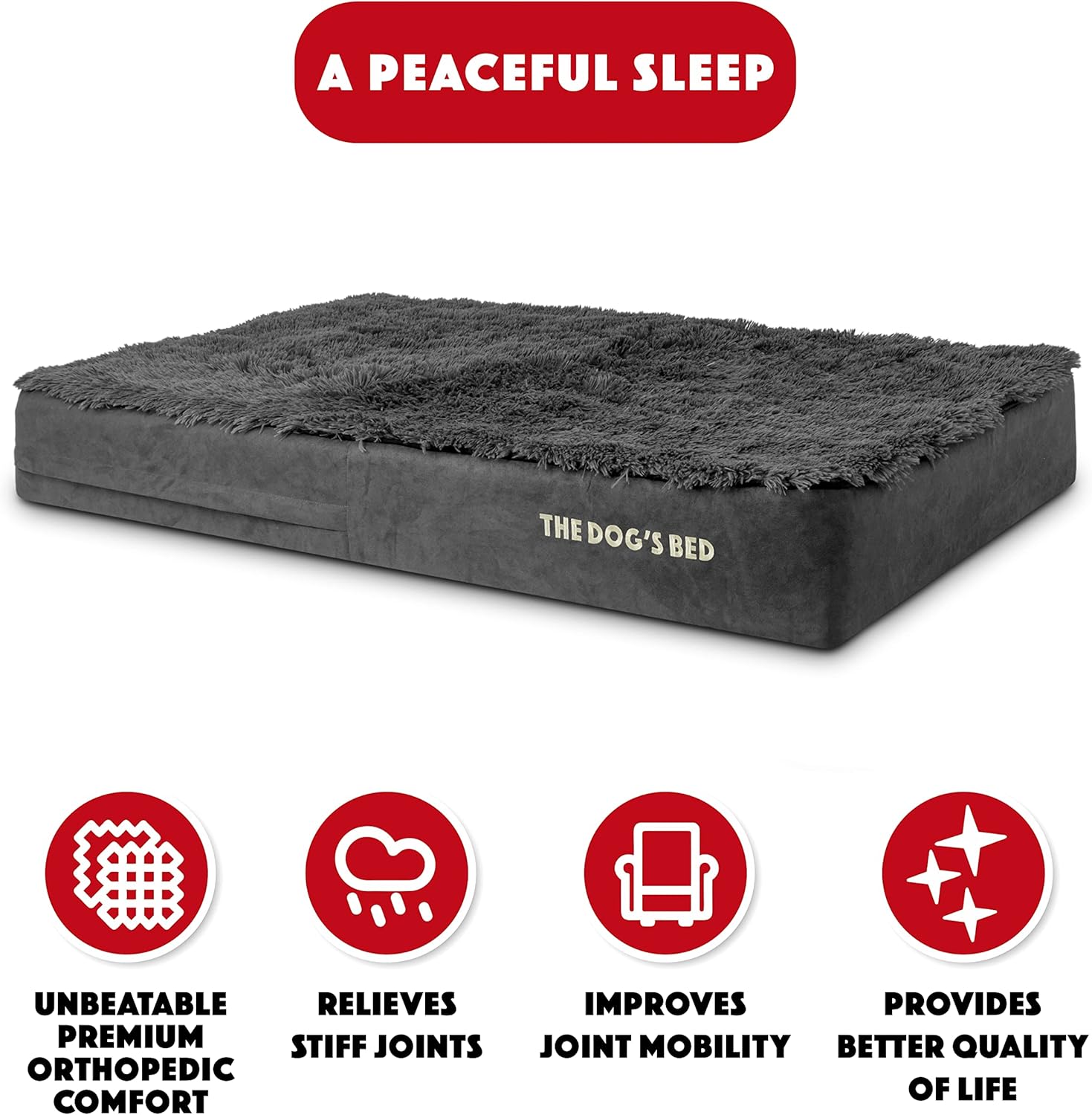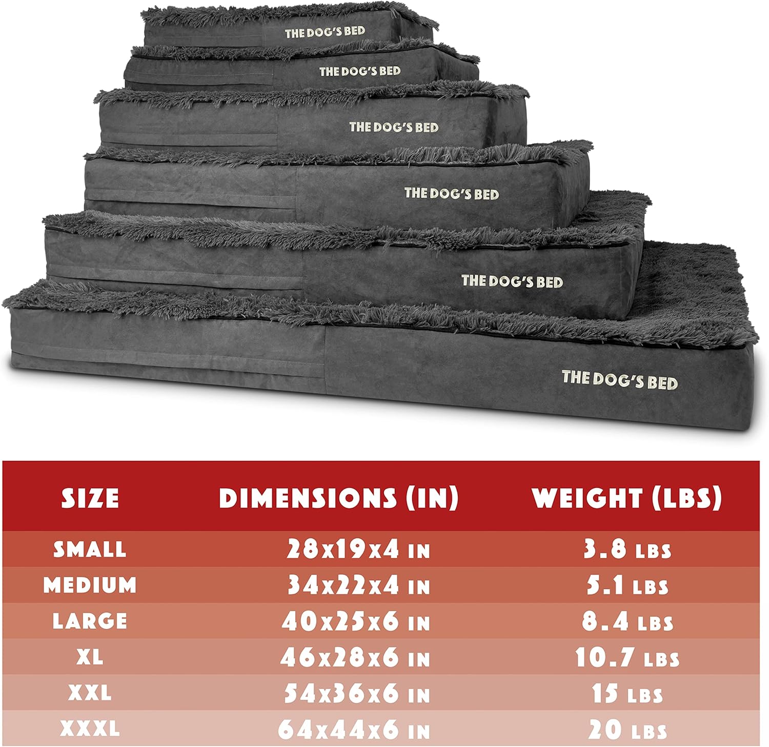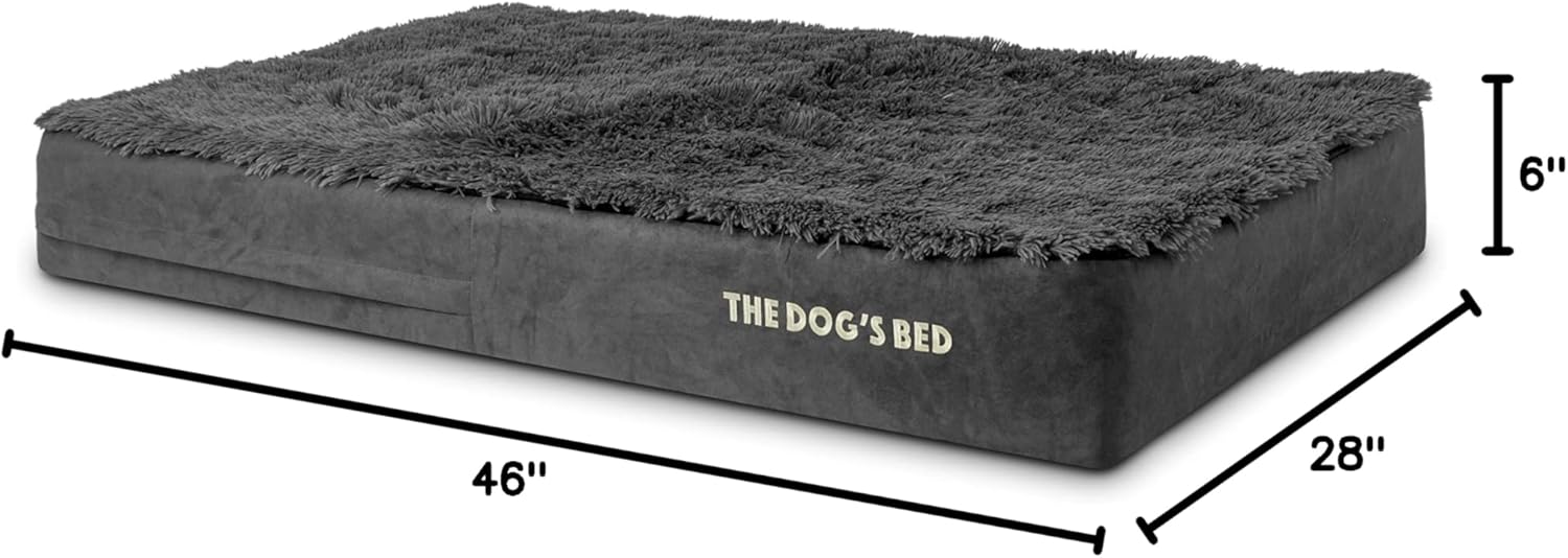 - Extra-large 6-inch size grey fur bed for giant breeds, 46″L x 28″W x 6″Th